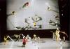 Video projections, which the mirror reflects onto the stage, synthesize the spaces of stage and screen, while generating new virtuosities. Dancers, prerecorded on video and projected in performance, are liberated from the limitations of the body: their movements are heightened through digital video morphing. A physical dancer, suspended behind the one-way mirror, appears phantomlike as they perform a pas de trois with projected and corporeal counterparts. Video wipes, dissolves, and zooms are used outside the typically strict video syntax to alter the spatial and temporal conventions of the stage, thus producing friction between the live and mediated performers.
